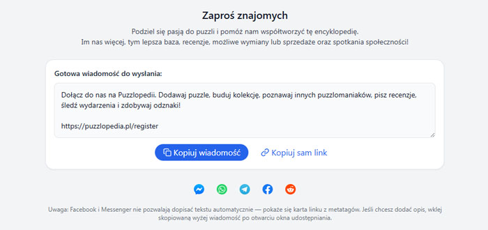 📢 Misja dla puzzlomaniaków!1. Na karcie puzzla znajdziecie teraz kilka opcji udostępniania strony 2. W swoim profilu → Społeczność → Zaproś...