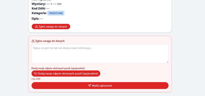Na każdej karcie puzzli znajdziecie opcję zgłoszenia uwag do danych.📌 Jeśli zauważycie literówkę, błąd, brakujące informacje – dajcie znać!...