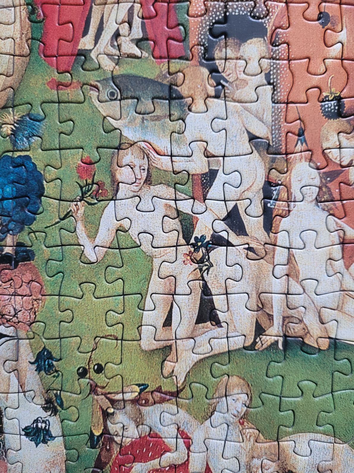 ⭐️ 5/5 Wyjątkowo przyjemne do układania. Chyba pierwszy raz układałam Educę i bardzo dobre wrażenie na mnie zrobiła. Elementy solidne, ciężko coś pomylić. W zestawie niewielki plakat, który bardzo dużo ułatwia (Na pudełku nie ma całego obrazka z puzzli). Kompozycja obrazu oczyście mocno ucięta, ale jeżeli mam być szczera to nie uważam, żeby to przeszkadzało. Bardzo dobrze się sprawdza ten obraz jako takie klasyczne puzzle z "chaosem".