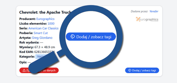 Na kartach puzzli pojawił się NOWY guzik – "Dodaj / zobacz tagi" 🥳 (zaraz obok zgłoszenia uwagi).👉 Tagi mogą dodawać tylko zalogowani użyt...